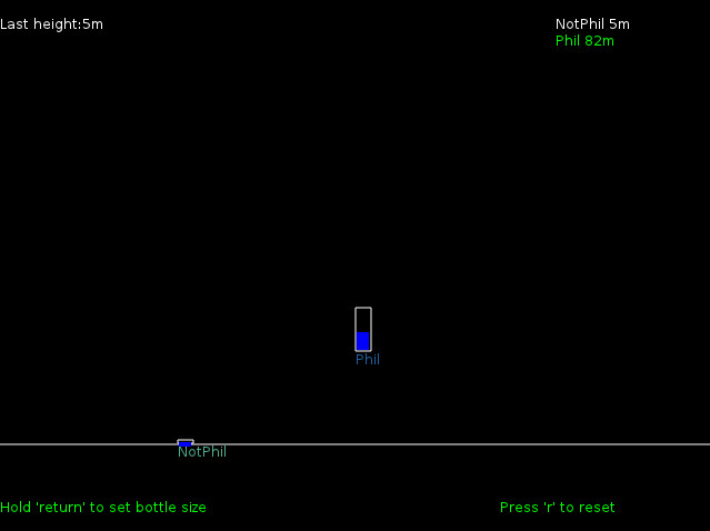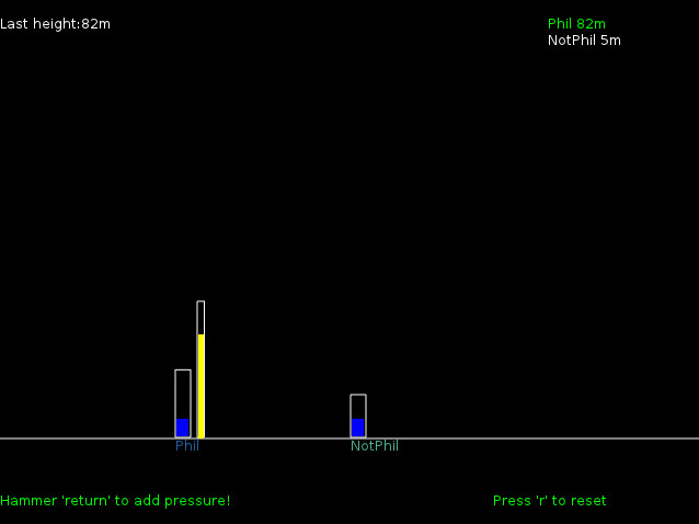 Created as a simple test for a LUA multiplayer framework I had made for multiplayer prototyping it proved quite popular around the office. With a very simple mechanic requiring players hammer a keyboard key rapidly to 'charge' their bottle rocket having a dozen players in a single room could create quite a racket.