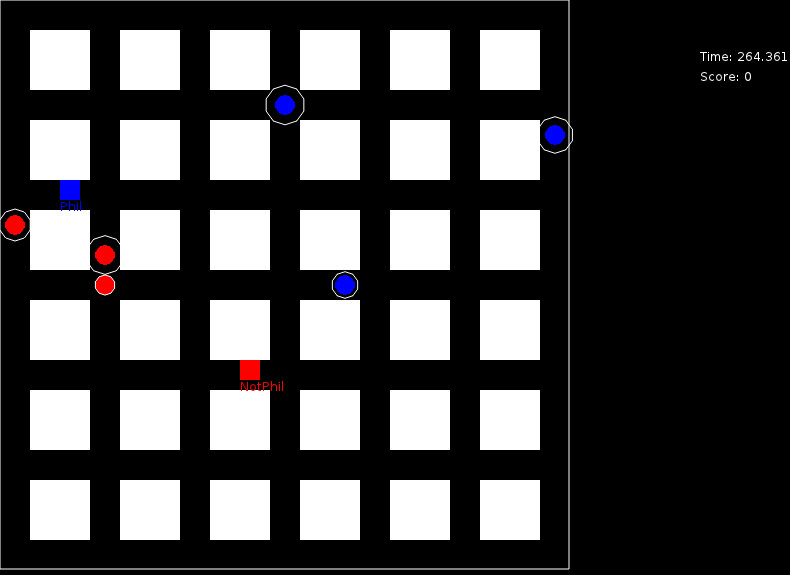 This game was made using the same LUA multiplayer framework I had used in the Bottle Rockets project. The white circle represented the scale of the emergency and the colours show which player is required to resolve it. Moving close to an event would shrink the circle and eventually remove it completely earning the player points. Emergencies block the paths that players drive along so cooperation between players is key to avoiding getting stuck.